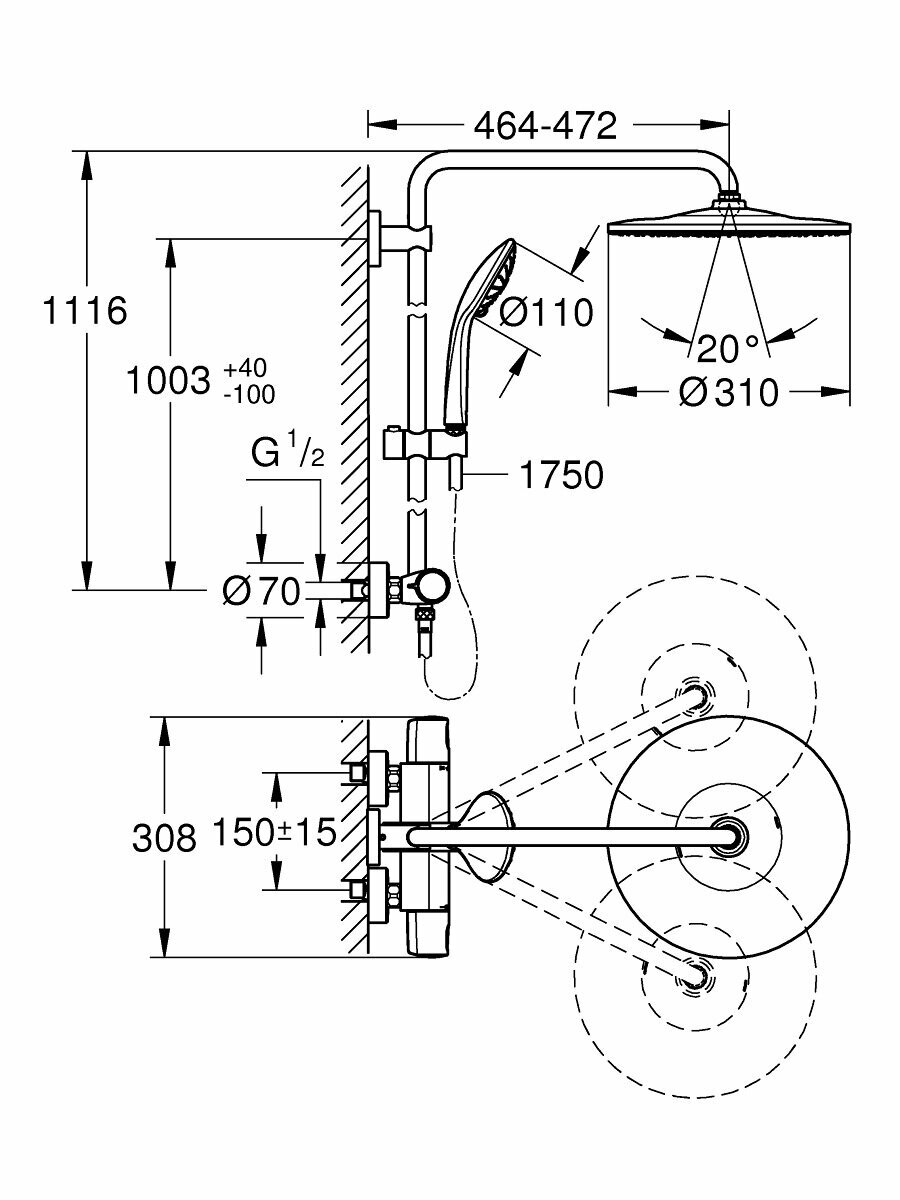 Душевая система с термостатом для душа GROHE Euphoria 310 26075001