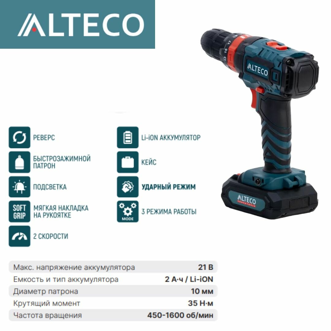 Аккумуляторная ударная дрель-шуруповерт ALTECO CID 0415 (CID 2110.1) / 21V