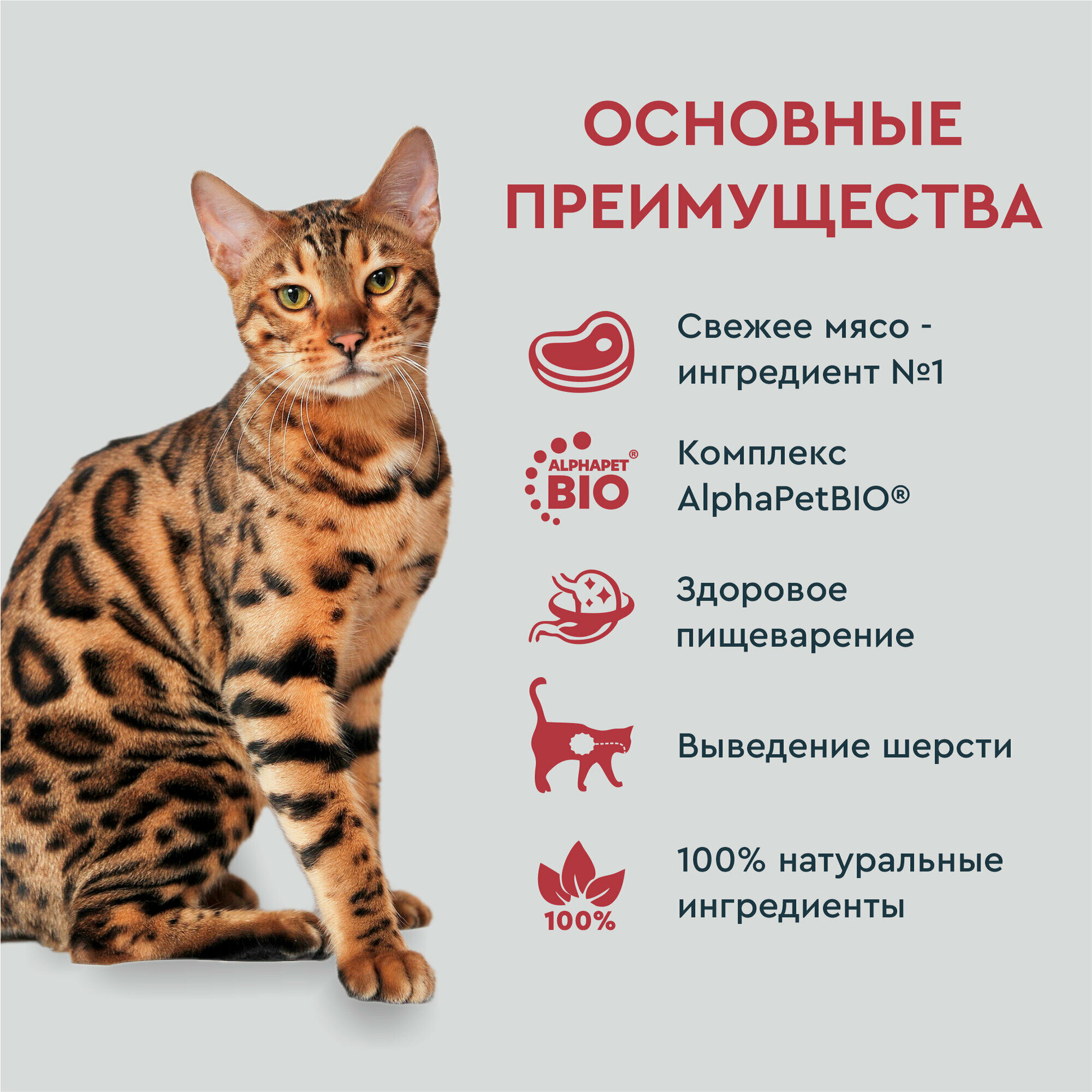 AlphaPet WOW Сухой полнорационный корм Superpremium c говядиной и печенью, для взрослых домашних кошек и котов, 1,5 кг