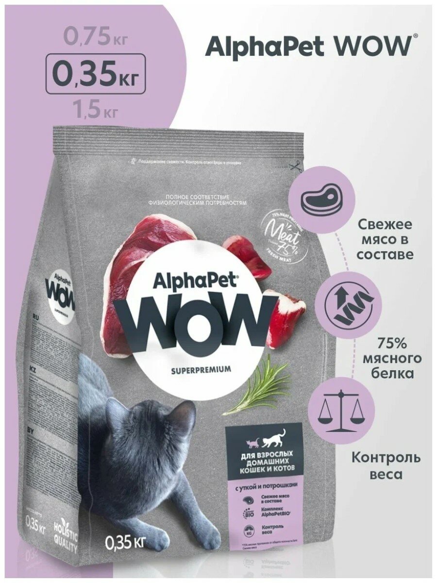 Купить AlphaPet WOW Superpremium Сухой корм для кошек Утка и Потрошки 0.35кг