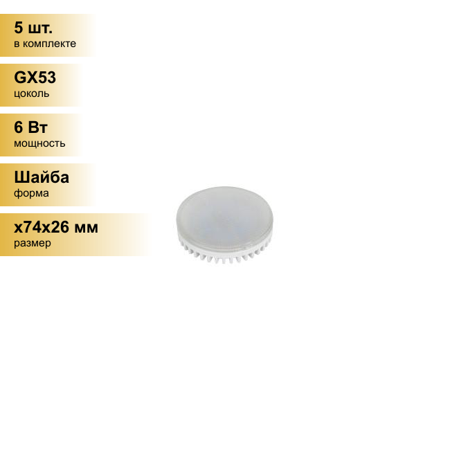 (Эл. лампа светодиодная 6Вт 220В), CAMELION LED6-GX53/830/GX53 (10 шт.)