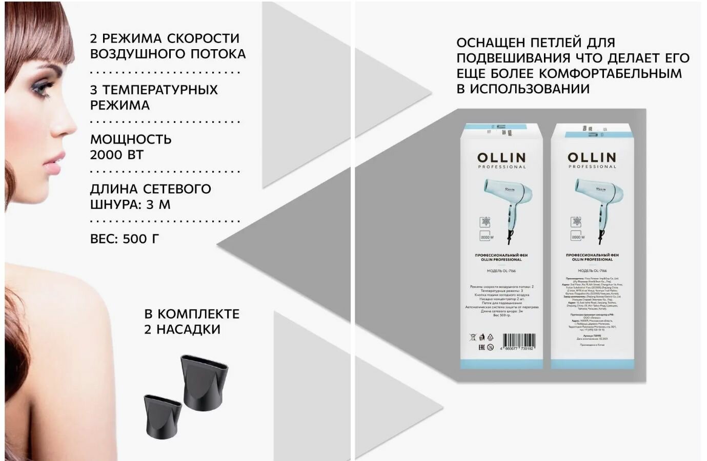 "Фен профессиональный OLLIN Professional модель OL-7166, 2000W интересное: