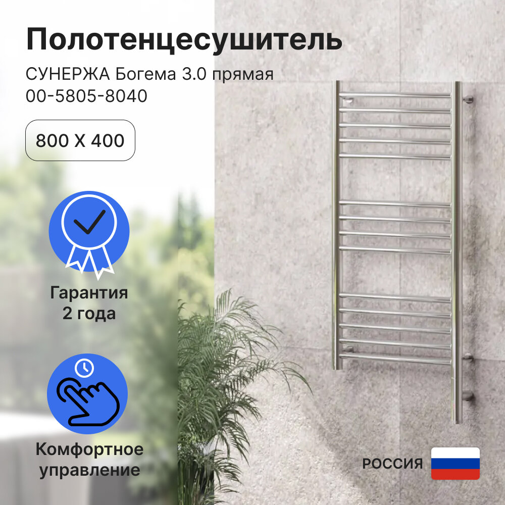 Сунержа Полотенцесушитель электрический Сунержа Богема 3.0 80х40 R прямая