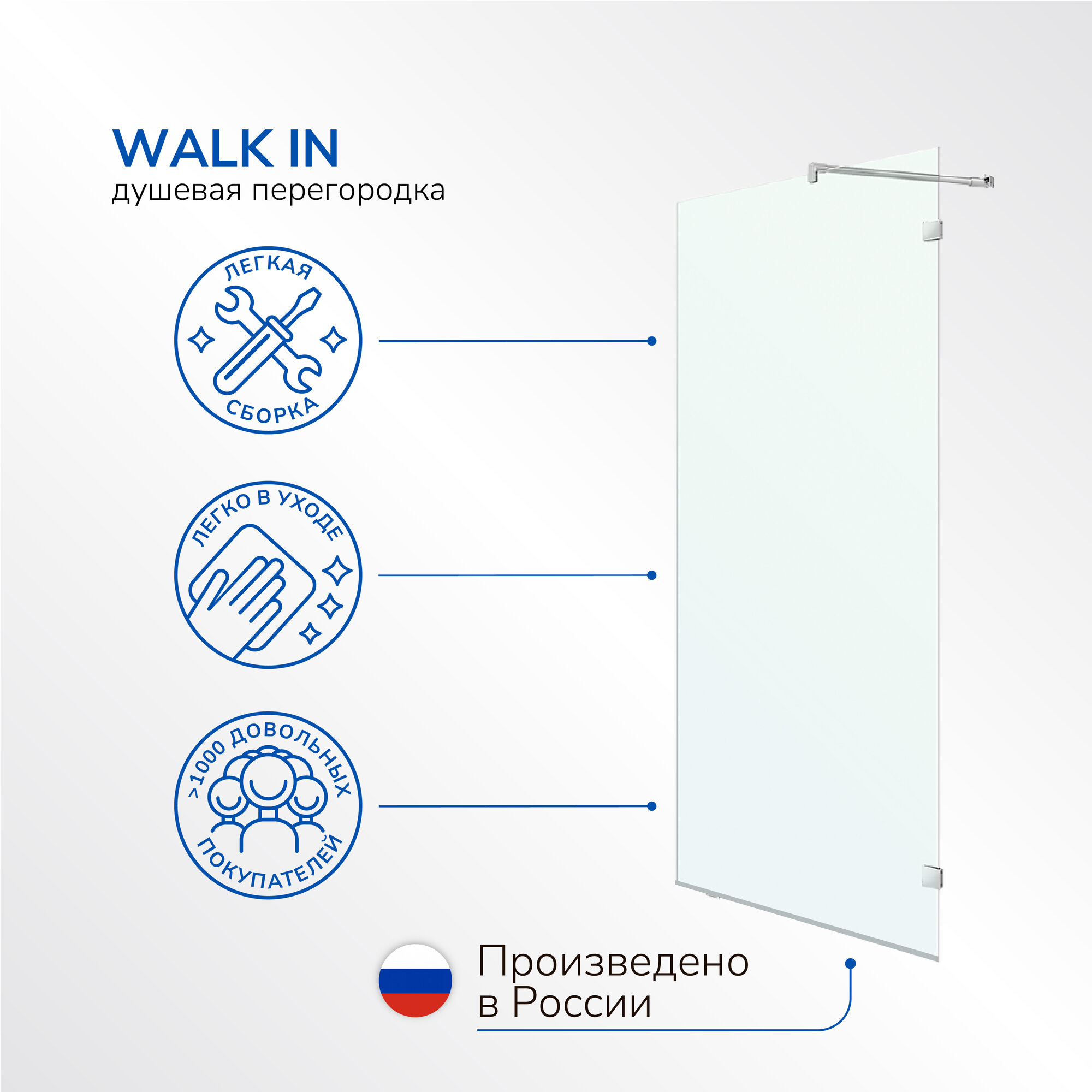 Душевое ограждение 76,5/80 см. Walk In стекло прозрачное