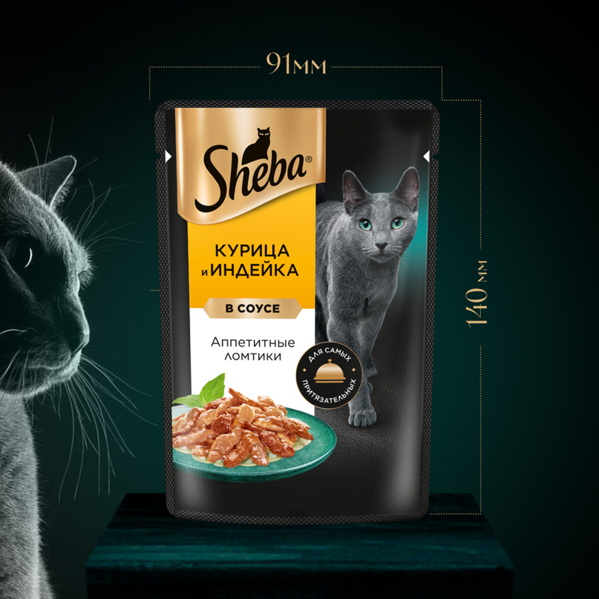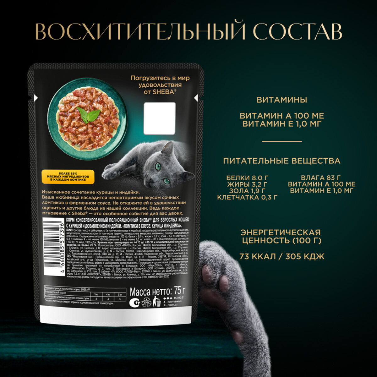 Купить SHEBA для взрослых кошек ломтики в соусе с курицей и индейкой пауч 75 гр х 10 шт