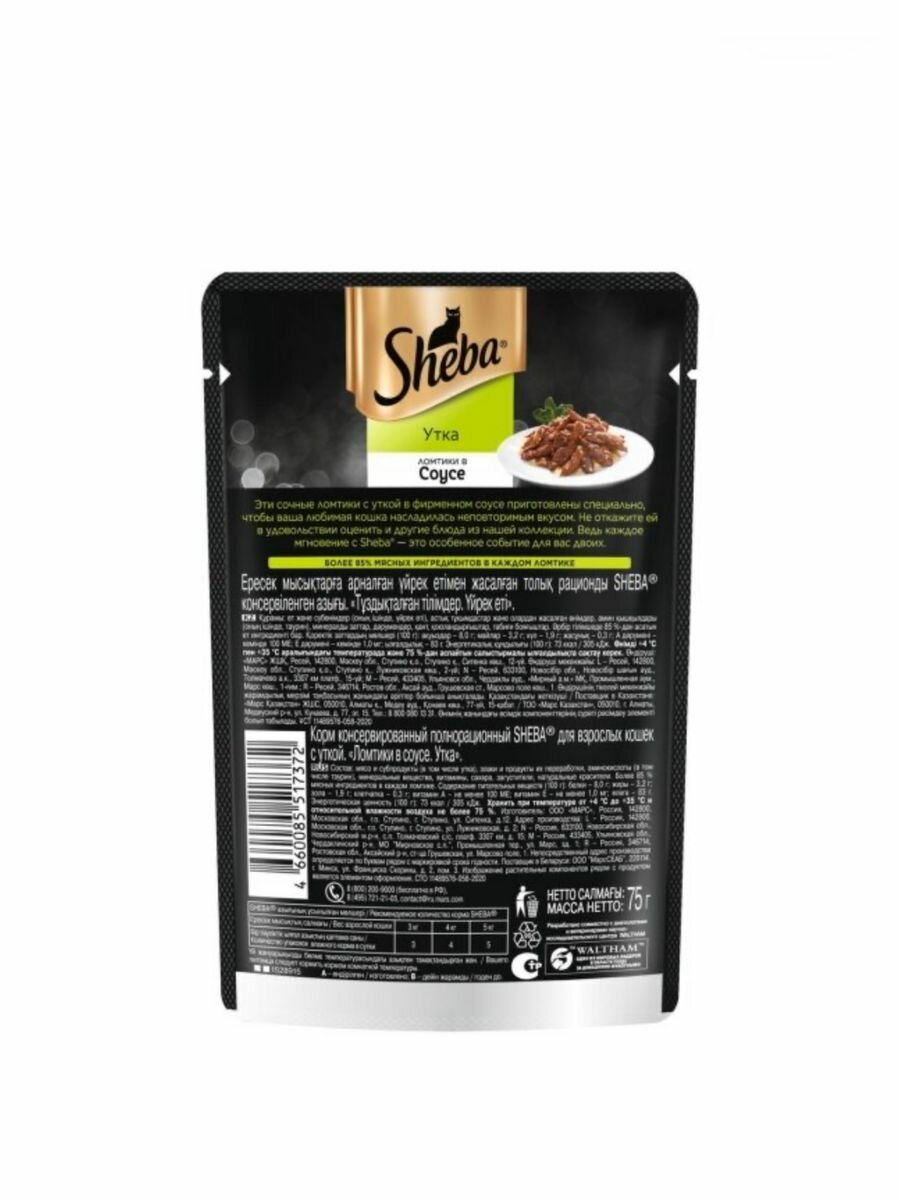 SHEBA для взрослых кошек ломтики в соусе с уткой пауч 75 гр (75 гр х 28 шт)