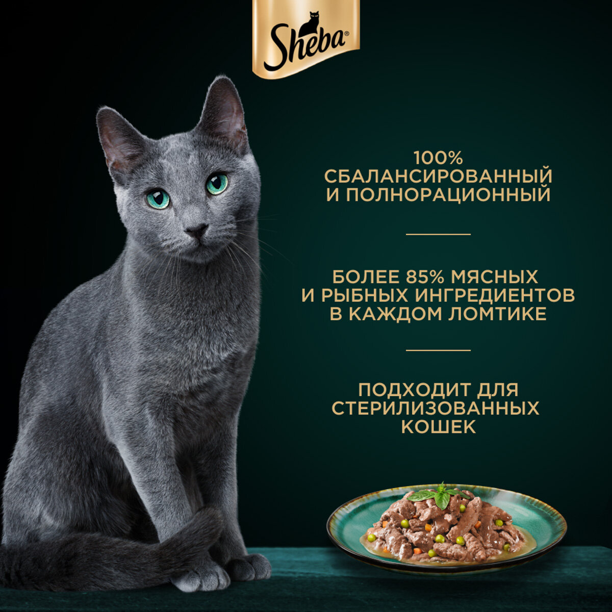 SHEBA для взрослых кошек ломтики в соусе с телятиной и языком пауч 75 гр х 10 шт