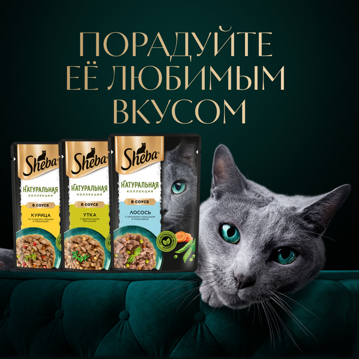Купить SHEBA NATURES для взрослых кошек с лососем и цельным горошком в соусе (75 гр х 28 шт)