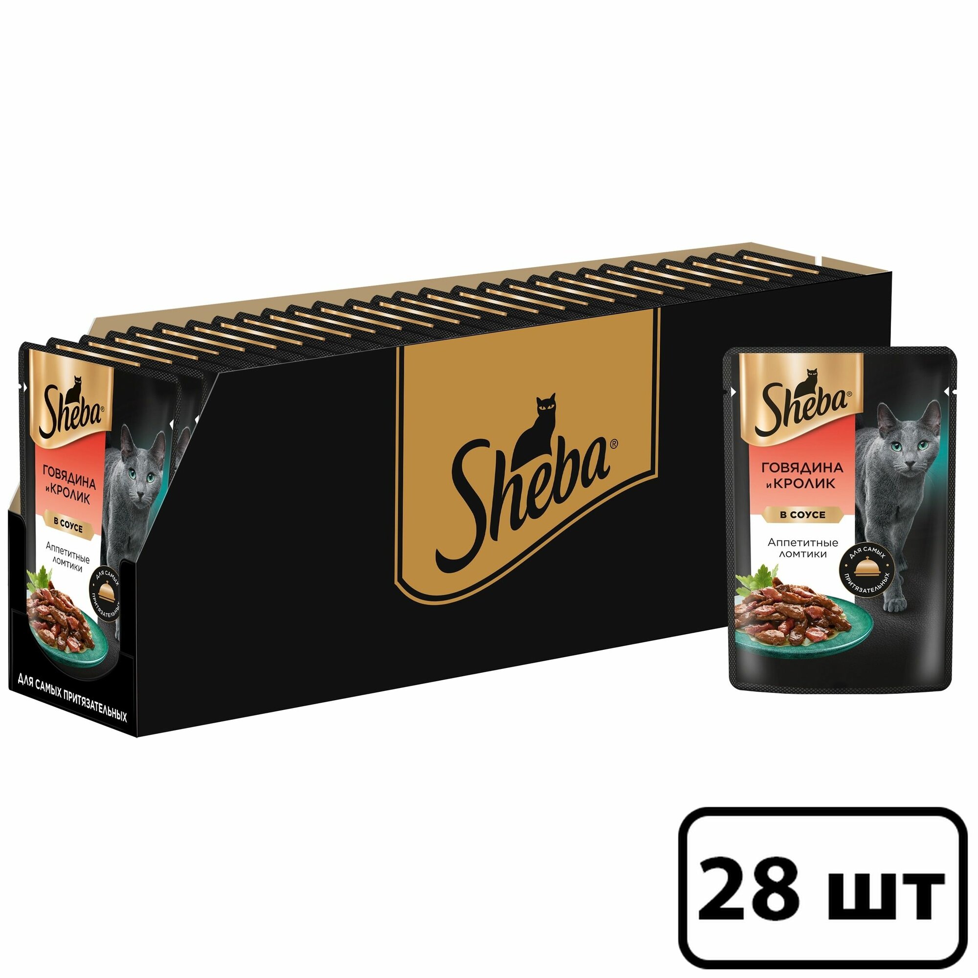 Sheba Ломтики в соусе пауч для кошек Говядина и кролик, 75 г. упаковка 28 шт