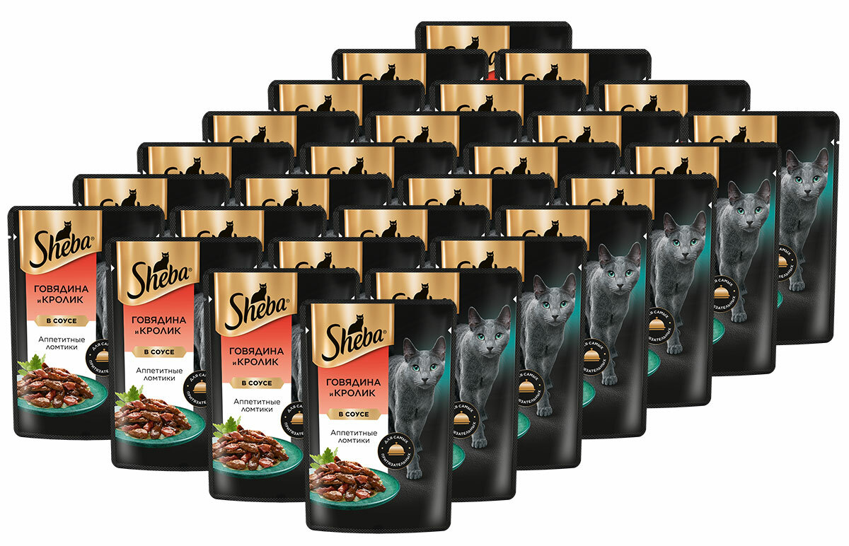Купить Влажный корм для кошек Sheba Ломтики в соусе. Говядина и Кролик 28 шт. х 75 г (кусочки в соусе)