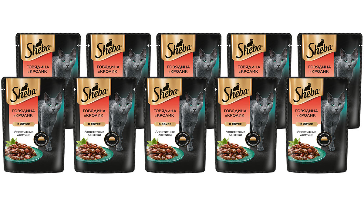 Купить SHEBA для взрослых кошек ломтики в соусе с говядиной и кроликом пауч 75 гр х 10 шт