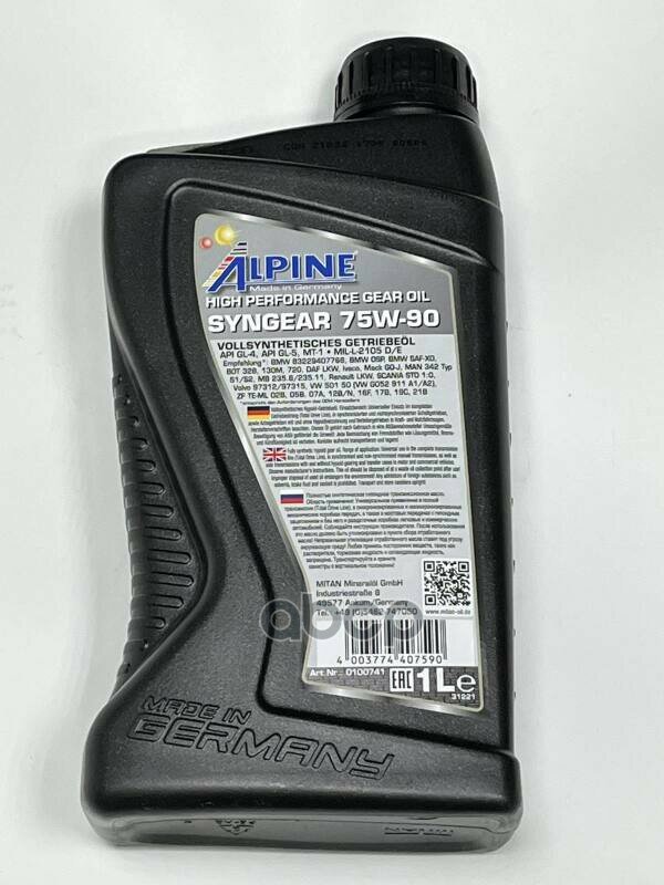 Масло трансмиссионное Alpine 75W-90 Syngear канистра 1л, арт. 0100741 интересное: