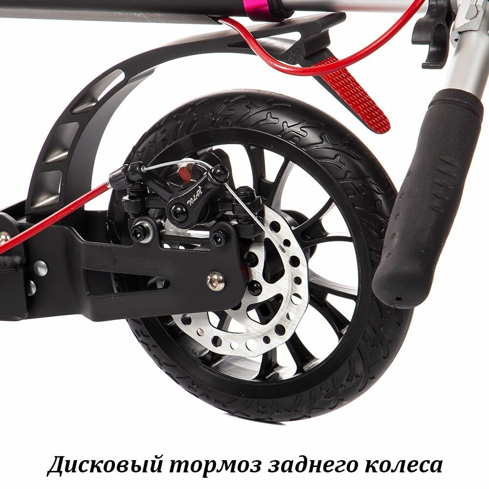 Ручной и ножной тормоз - шик. По моему мнению - прекрасное средство передвижение вокруг дома и по району. Не далее! Если в планах ехать на нём 30 минут до работы по разбитым дорогам - не советую. Если просто проводить время в прогулке, скользя по ровной дороге - это хороший выбор ? |