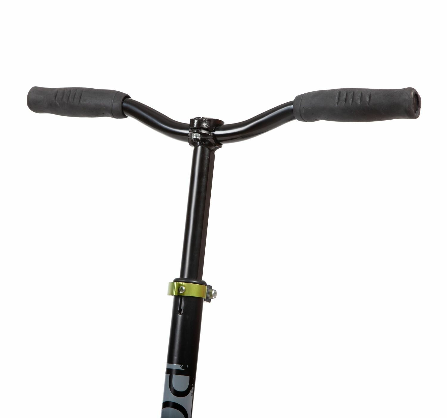 Самокат городской NOVATRACK POLIS PRO алюминий, складной с помощью кнопки на раме, эргономичный Y-руль с нескладными рукоятями, колеса PU 230*200мм, черный