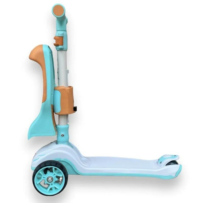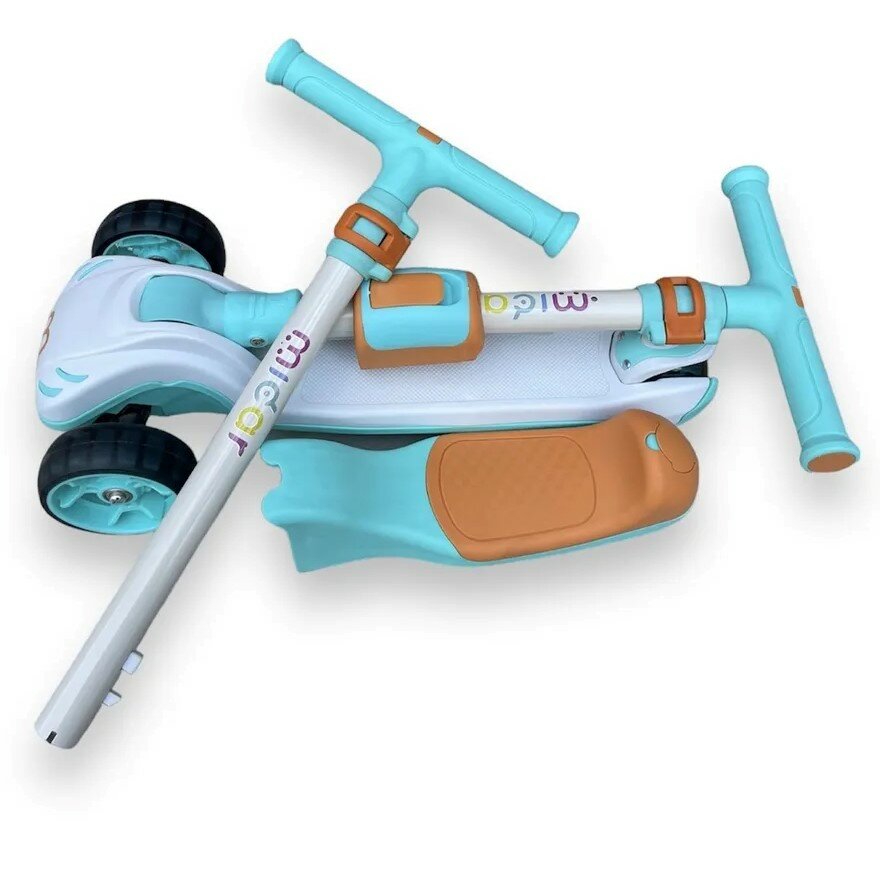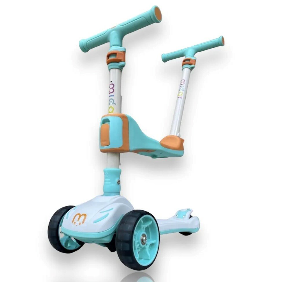 Купить Детский трёхколёсный самокат 3 в 1 Scooter Micar Transformer складной, с сиденьем, родительской ручкой и светящимися колёсами Мятный
