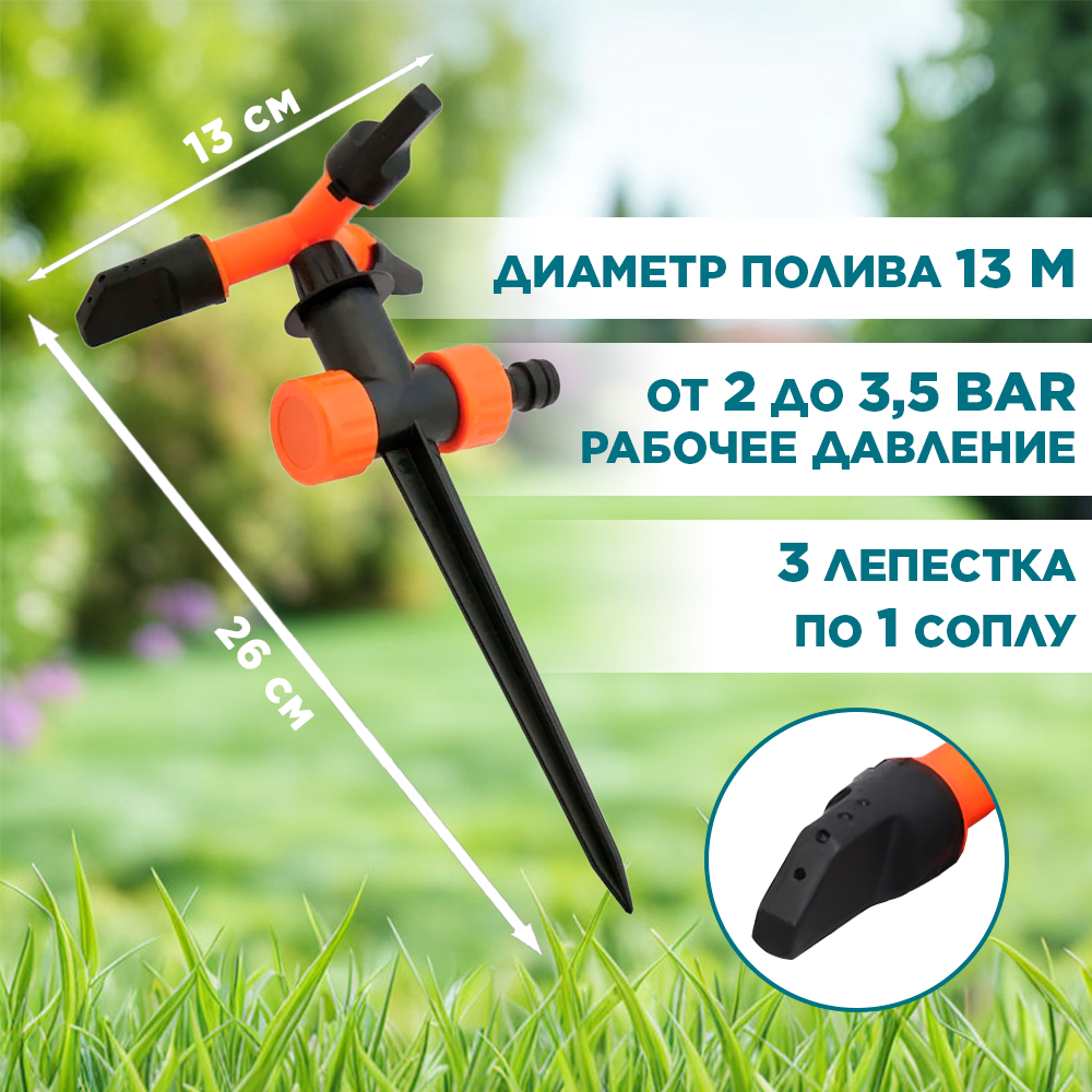 СохранитьОроситель AQUAPULSE, пластиковый вращающийся на ножке 3-х рожковый, для полива огородов, клумб, газонов, АР3024 интересное: