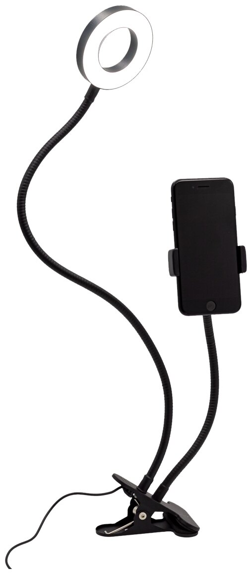 Купить ARTSTYLE TL-604B Светильник на прищепке, черный (настольный кольцевой светодиодный, димм, с держателем для телефона)