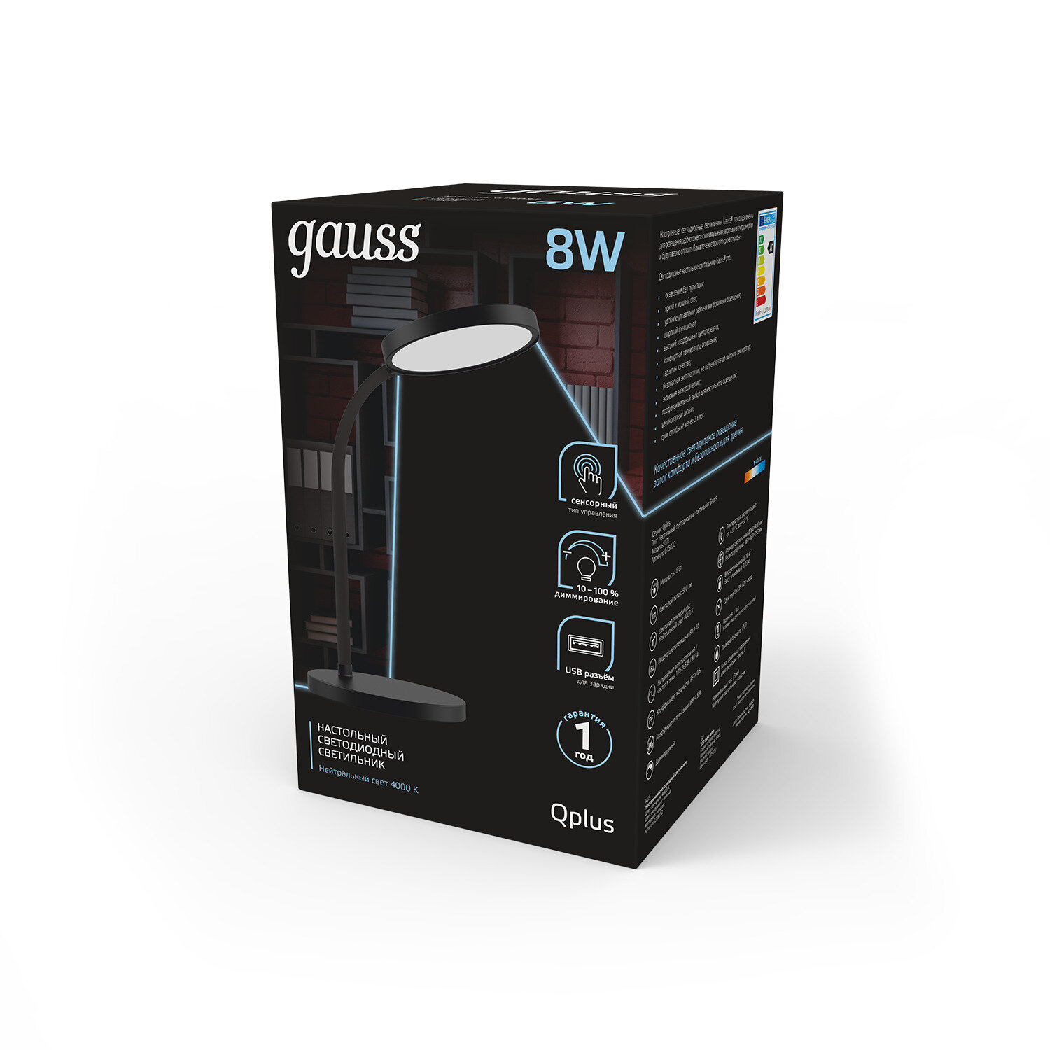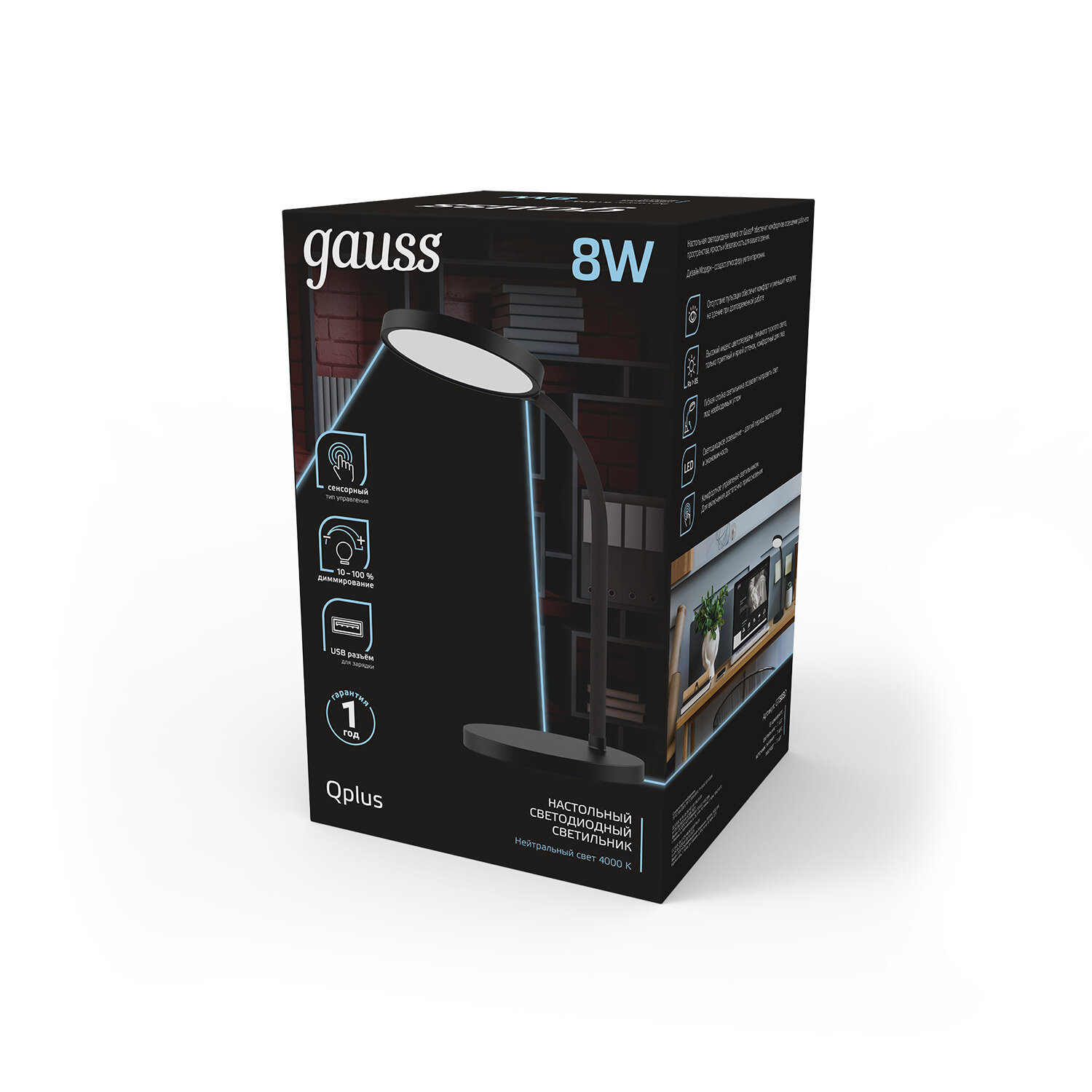 Настольная лампа GAUSS Qplus GTL503 8W 500lm 4000K 170-265V черный диммируемый USB LED 1/12