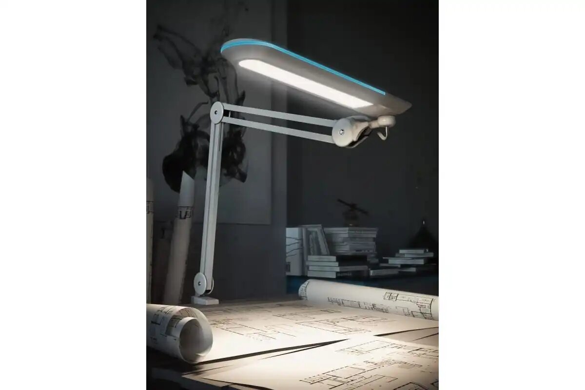 Лампа настольная бестеневая на струбцине REXANT, 60 SMD LED, Blue Stream, белая