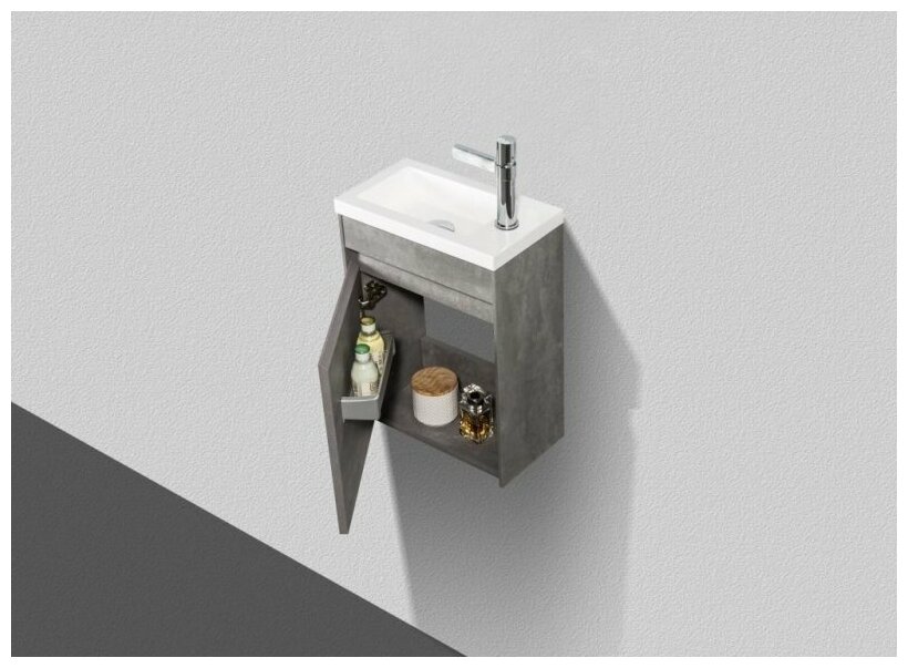 BelBagno PIETRA MINI База под раковину подвесная, Stucco Cemento 454x257x520, PIETRA MINI-460-1A-SO-SCM-L, левосторонняя