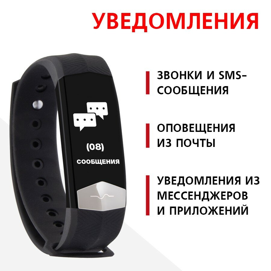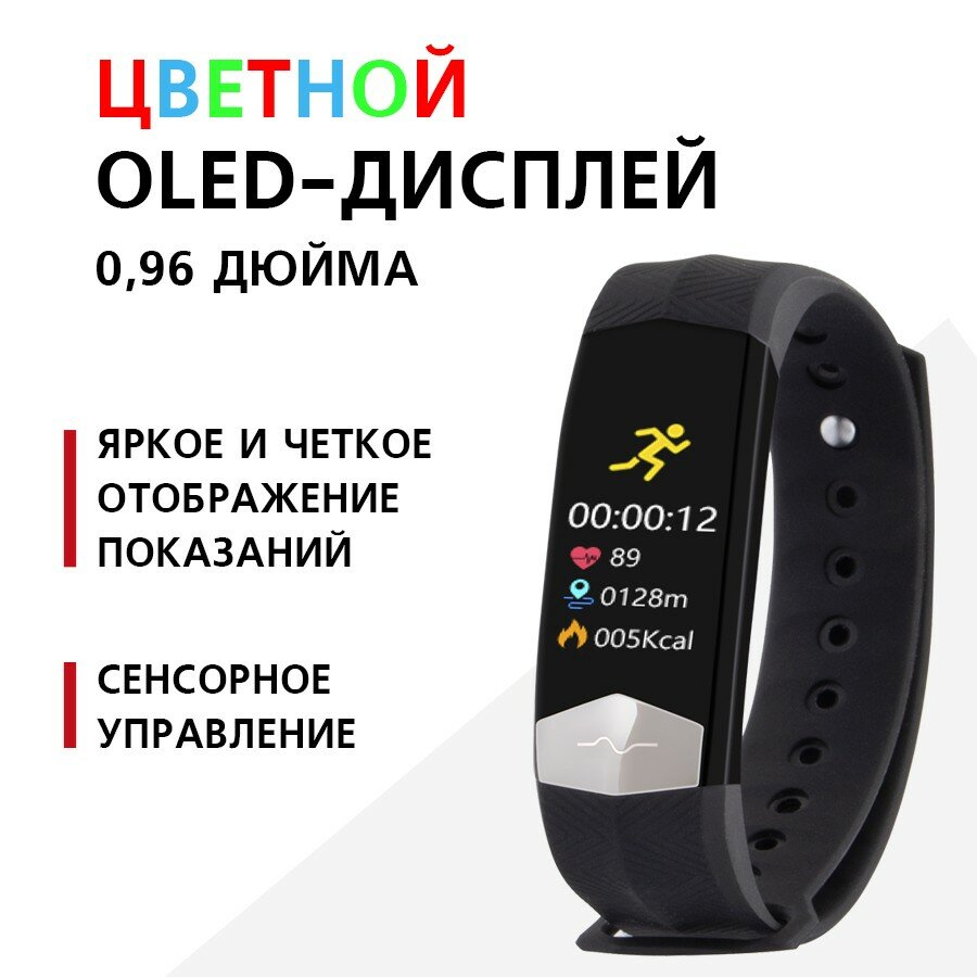 Фитнес-браслет Red Line RF-01, 0.96", IP68, пульсометр, датчик уровня кислорода, черный