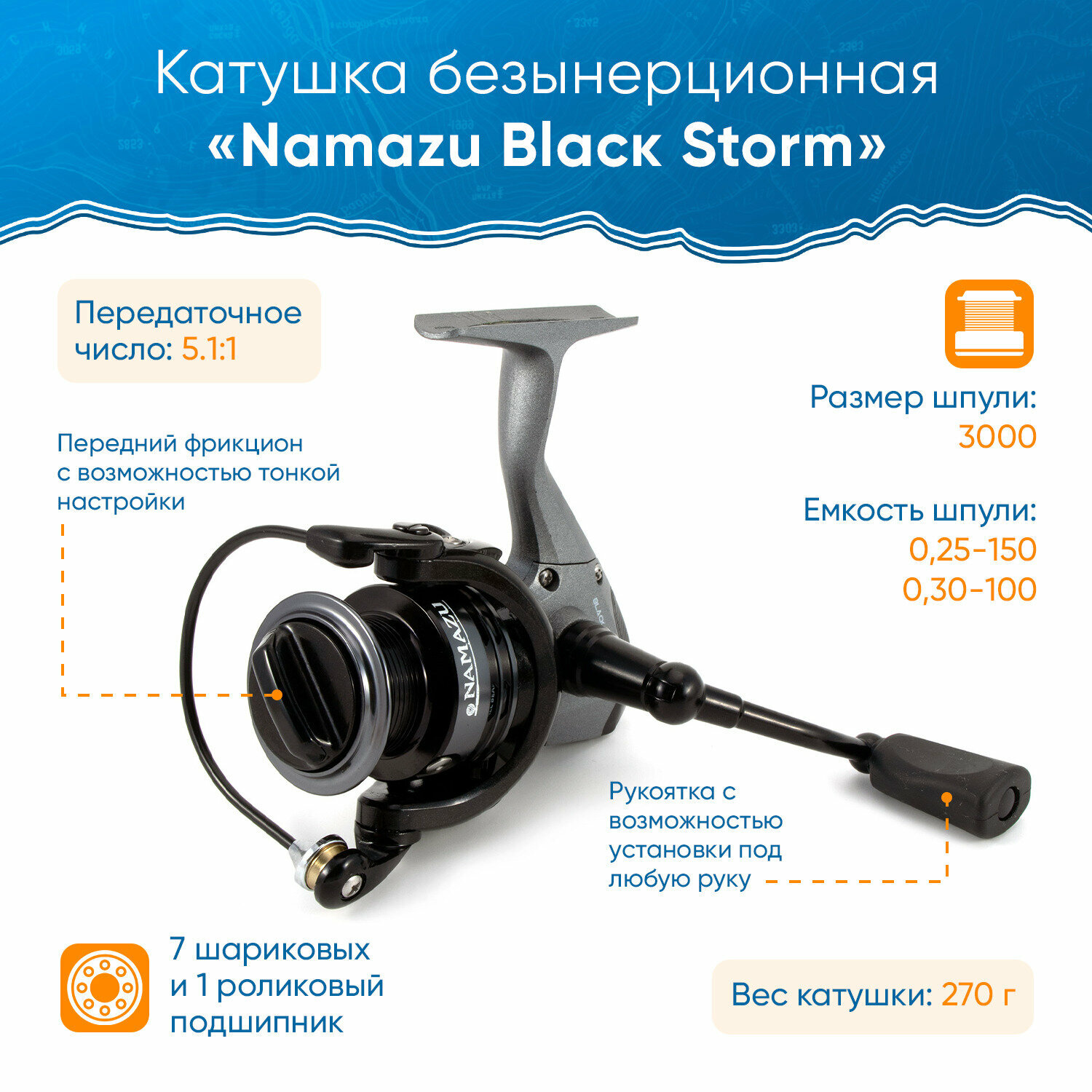 Namazu Катушка б/ин Namazu Black Storm BST2000, 7+1 подшипник, 5.1:1, металлическая шпуля + запасная графитовая