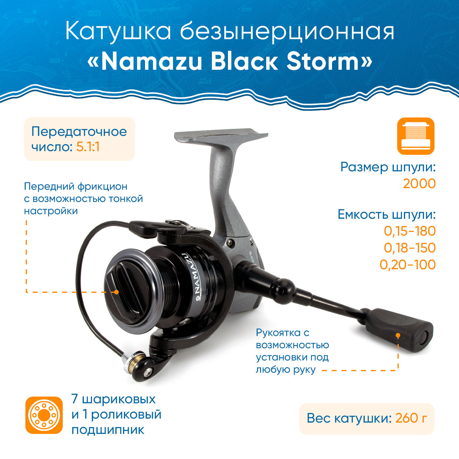 СохранитьNamazu Катушка б/ин Namazu Black Storm BST2000, 7+1 подшипник, 5.1:1, металлическая шпуля + запасная графитовая интересное: