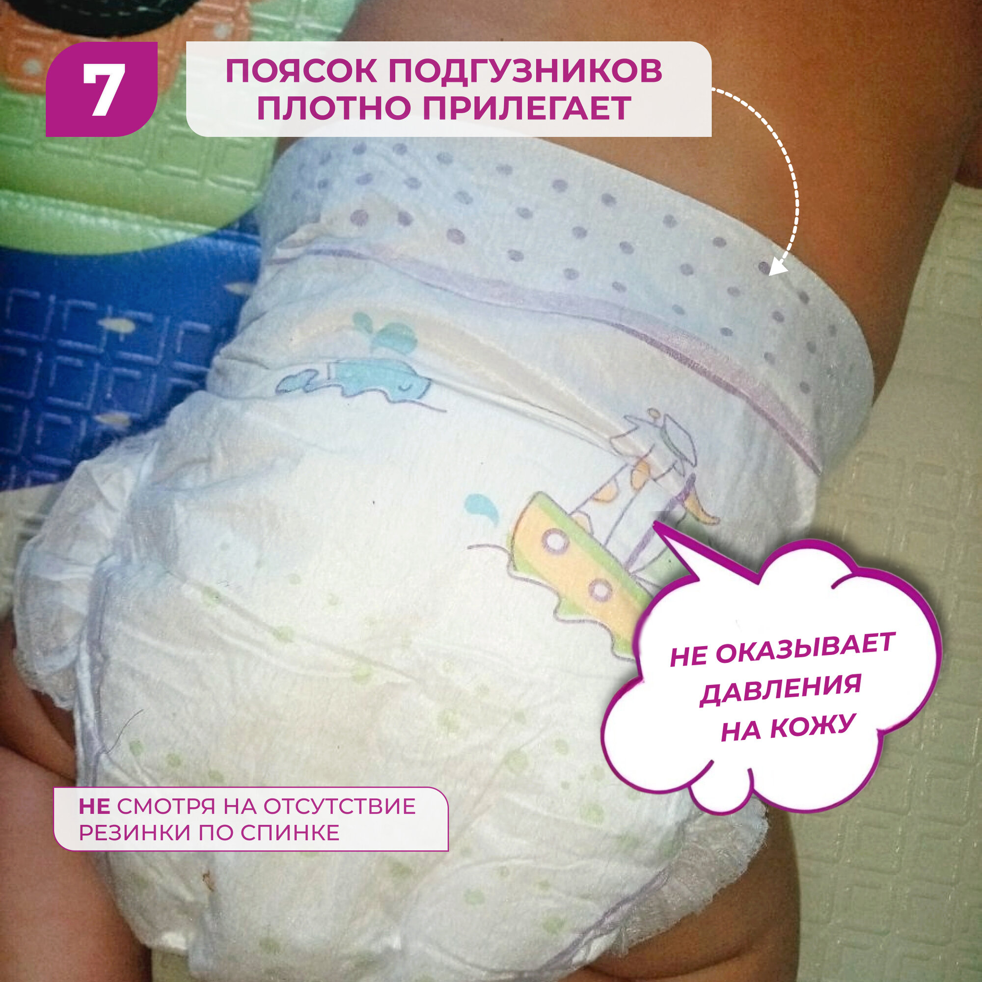 Самое главное,что не протекают,по размеру подошли идеально на вес 7кг,сильно не затягивают,не имеют противного запаха |