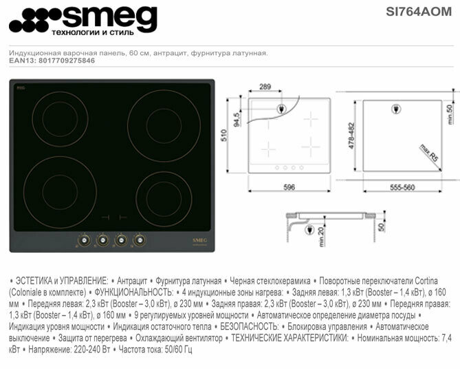 Ниже Вы можете прочитать отзывы на Индукционная варочная панель, 60 см, антрацит, Smeg SI764AOM, ознакомится с подробными характеристиками, посмотреть интересные обзоры и фотографии на Индукционная варочная панель, 60 см, антрацит, Smeg SI764AOM.