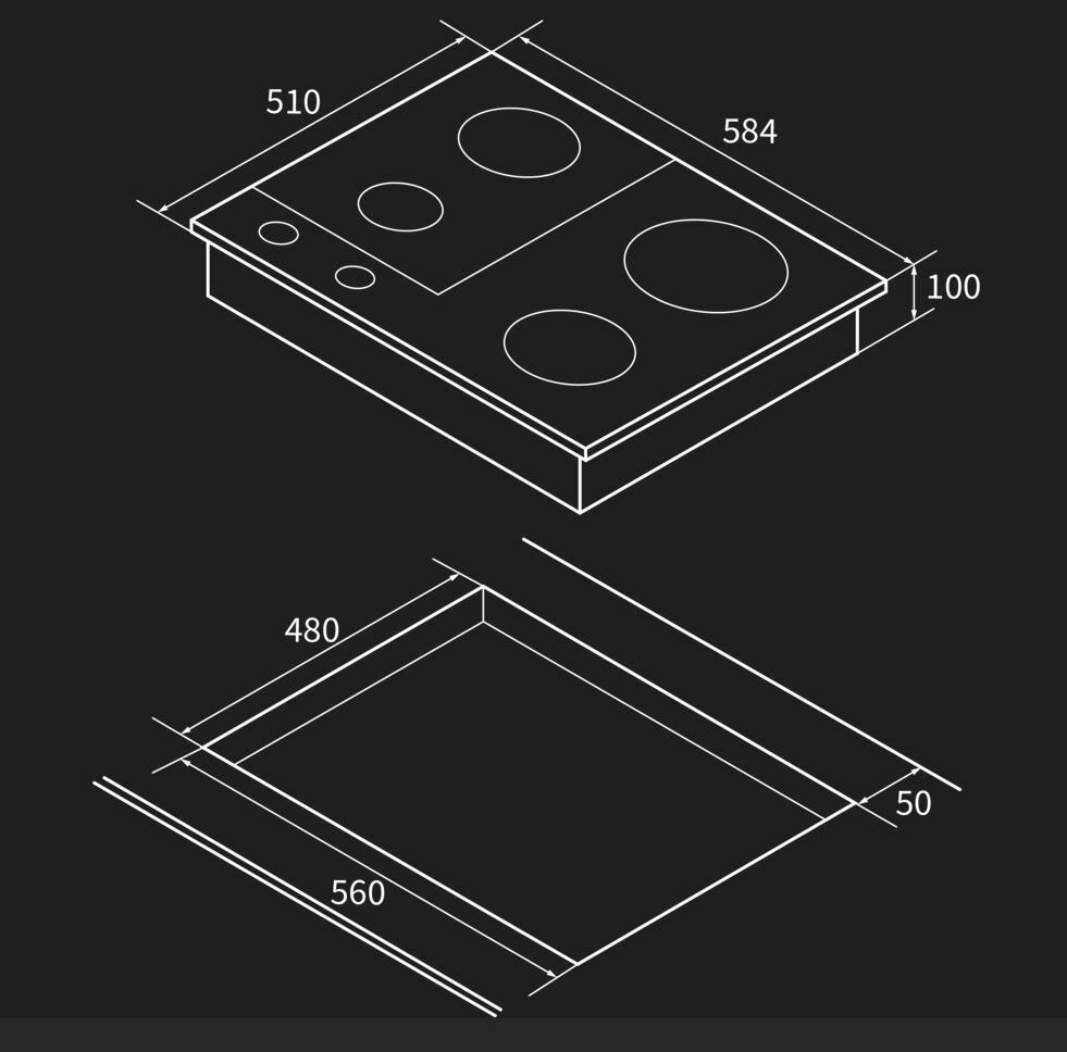 Комбинированная варочная панель 58*51 HIBERG VM 6020 B газо-электрическая из стеклокерамики "Черное стекло"