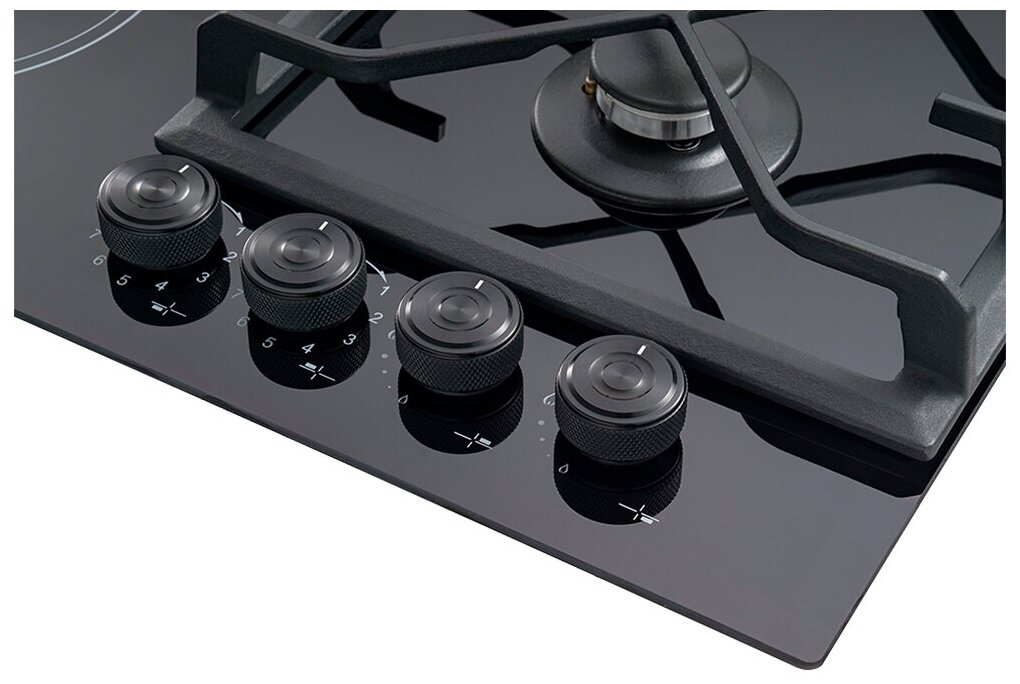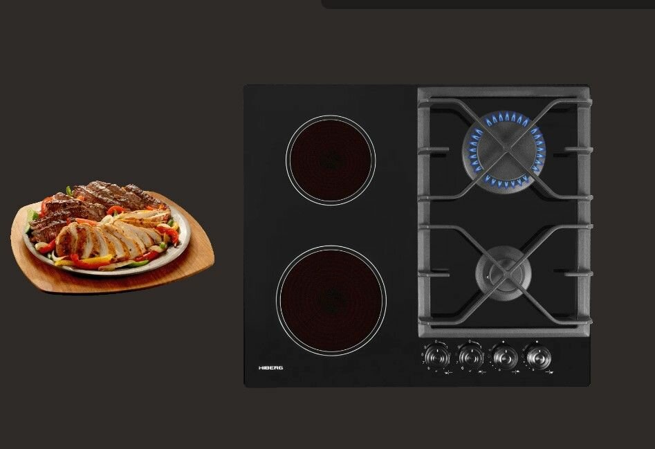 Варочная поверхность HIBERG VM 6020 B комбинированная, газоэлектрическая, стеклокерамика, электророзжиг, газ-контроль, черный