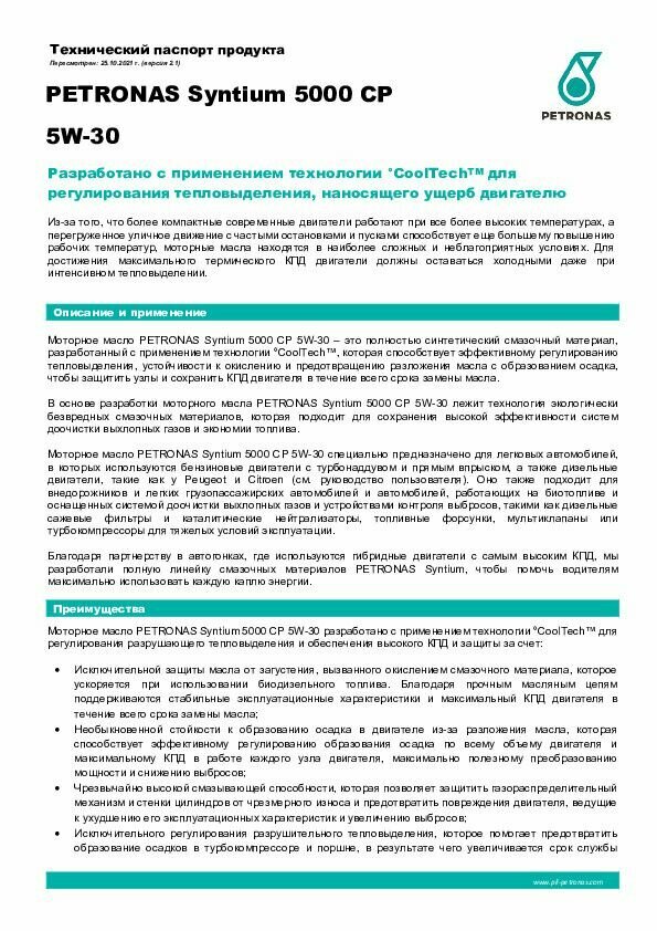 Syntium 5000 Cp 5w30 5l PETRONAS арт. 70606M12EU