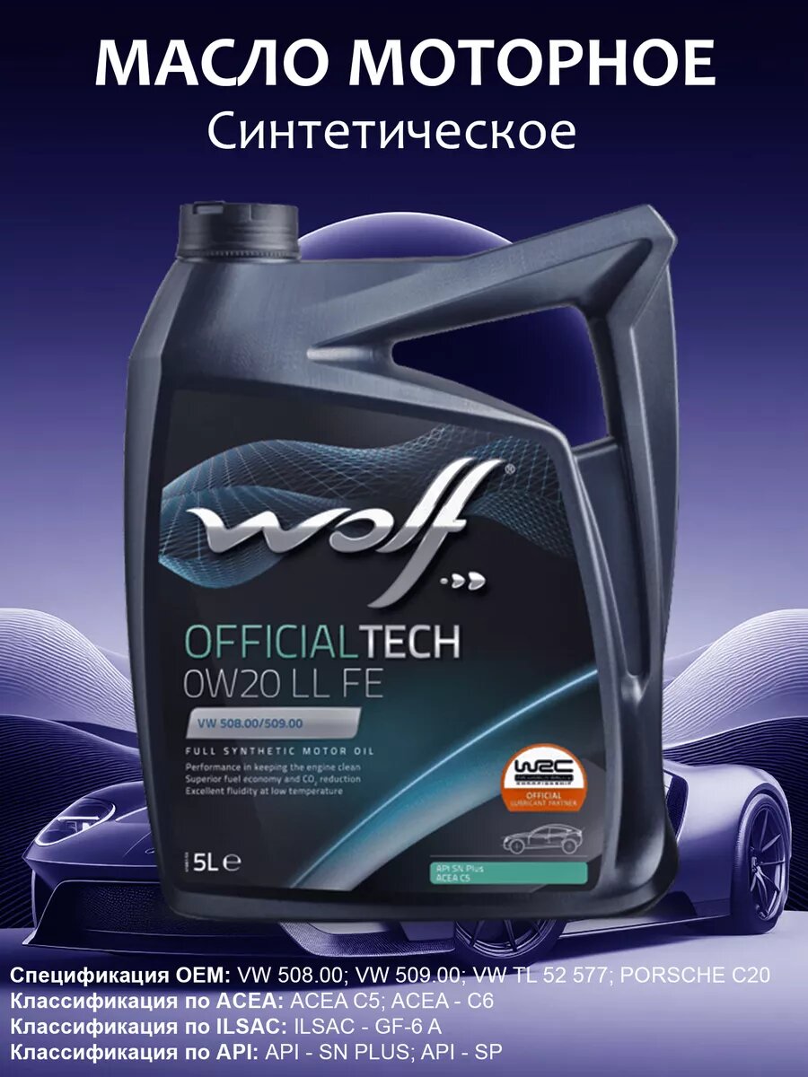 WOLF OIL 8331336 OFFICIALTECH 0W-20 LL FE ACEA C6 API SP VW 508.00/509.00 5 моторное масо (PN )