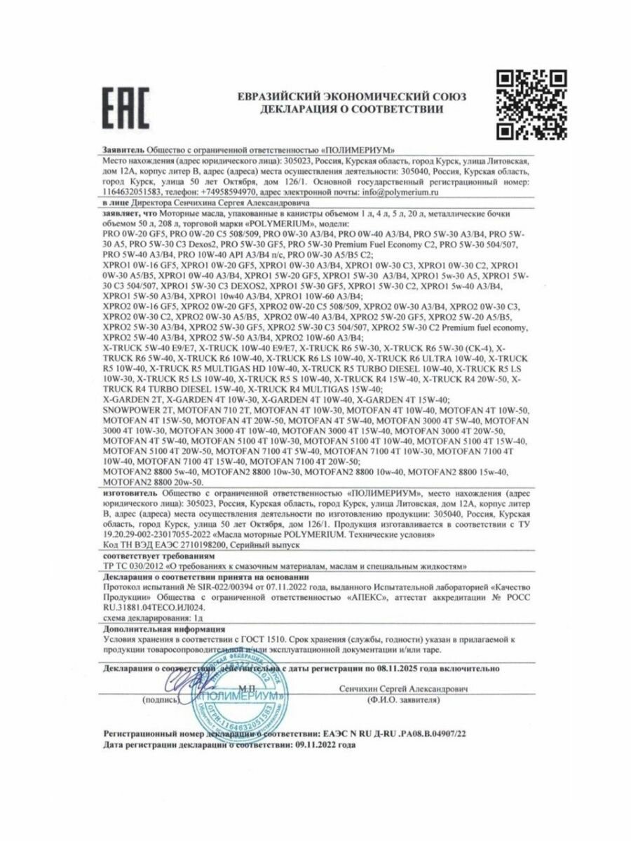 Ниже Вы можете прочитать отзывы на POLYMERIUM Масло Polymerium Моторное Синтетическое Polymerium Xpro1 10W-40 Sn 4L, ознакомится с подробными характеристиками, посмотреть интересные обзоры и фотографии на POLYMERIUM Масло Polymerium Моторное Синтетическое Polymerium Xpro1 10W-40 Sn 4L.
