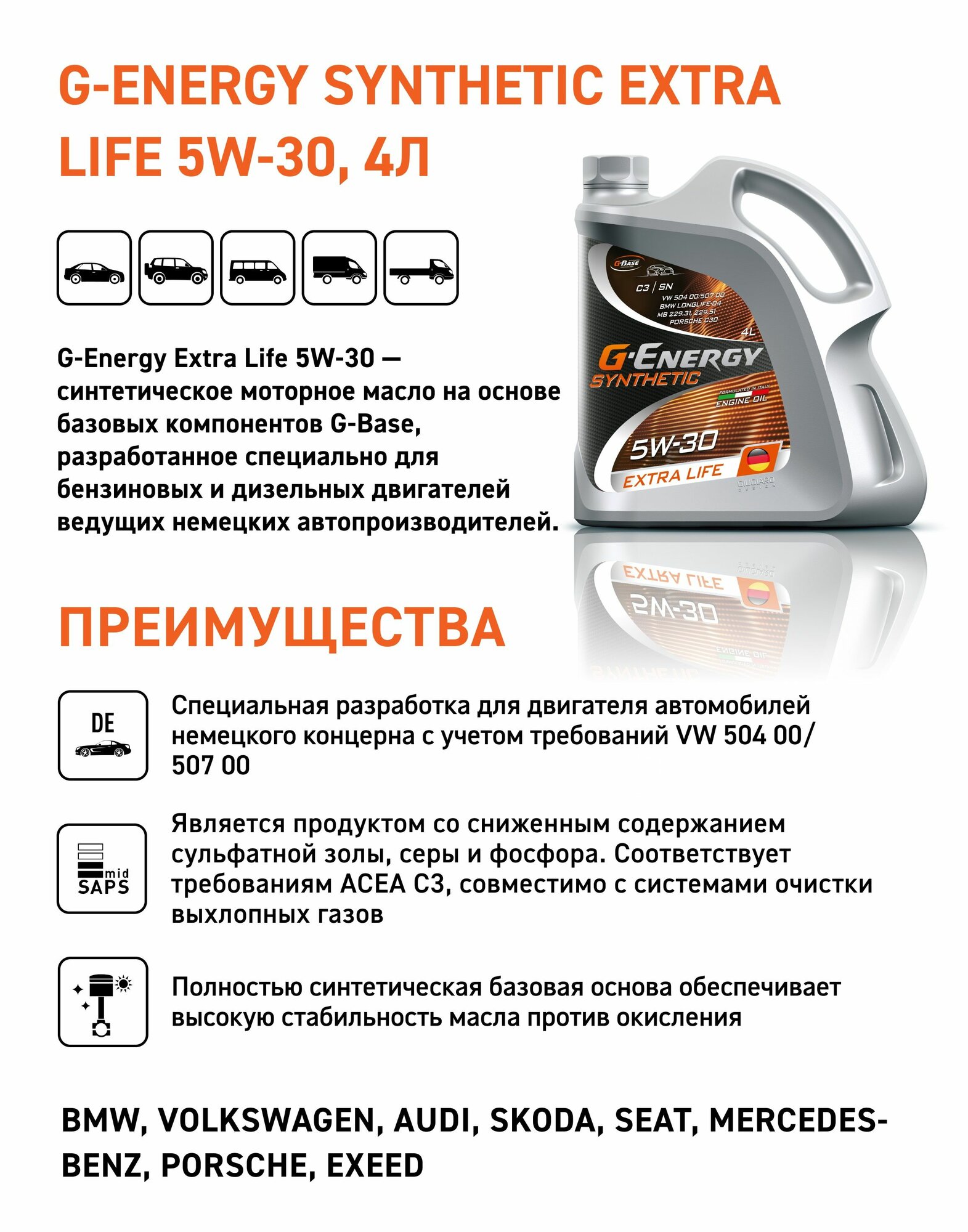 G-ENERGY 253140431 G-ENERGY SYNTHETIC EXTRA LIFE 5W-30 4Л