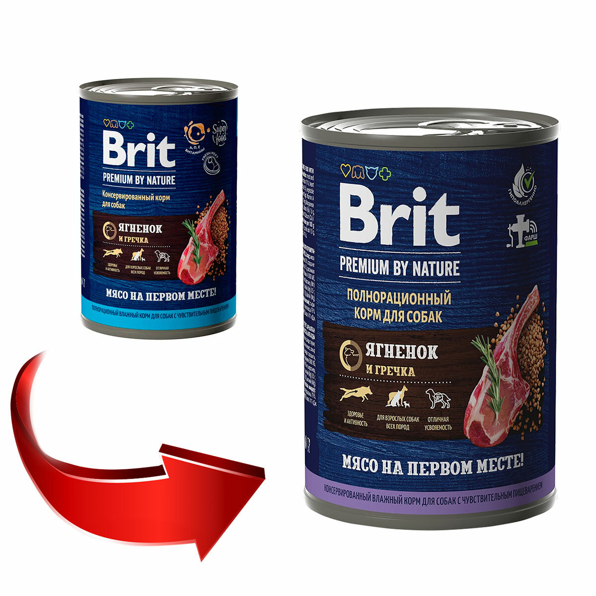 Brit Premium by Nature полнорационный влажный корм для собак с чувствительным пищеварением, фарш из ягненка с гречкой, в консервах - 410 г х 9 шт