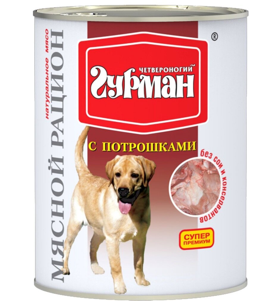 Корм Четвероногий гурман Мясной рацион (консерв.) для собак, с потрошками, 850 г x 6 шт