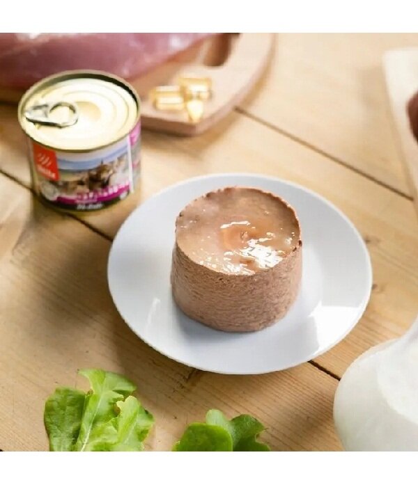 | Состав | индейка и субпродукты (не менее 47%), мясные субпродукты (лёгкое, печень, селезёнка, почки) (не менее 45%), молоко (не менее 5%), витамины и минеральные вещества, яичный порошок, рыбий жир |