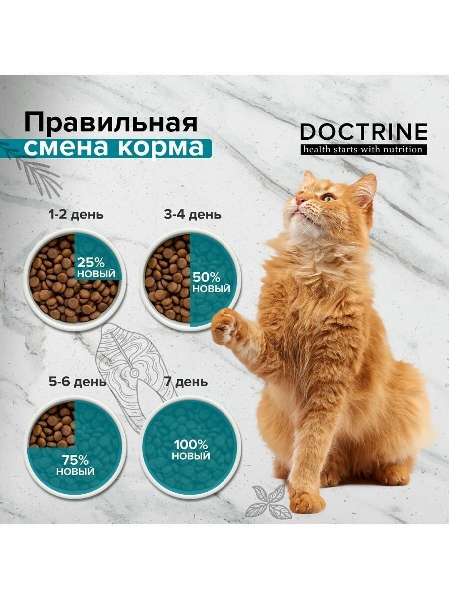 Корм сухой Doctrine беззерновой, полнорационный для стерилизованных кошек и кастрированных котов с индейкой и лососем, 3 кг