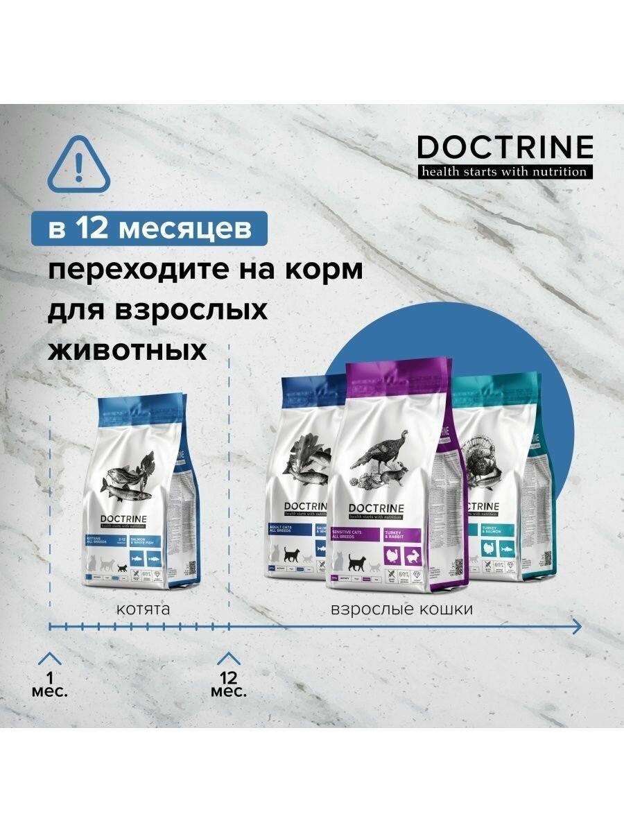 Сухой корм для котят Беззерновой DOCTRINE с лососем и белой рыбой 3кг / доктрин, доктрина