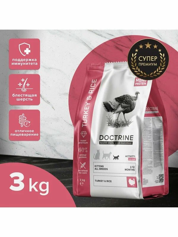 Корм сухой Doctrine для котят с индейкой и рисом, 3 кг