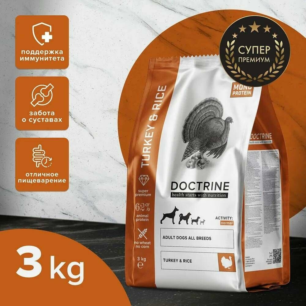 DOCTRINE сухой корм для взрослых собак всех пород с индейкой и рисом 3кг