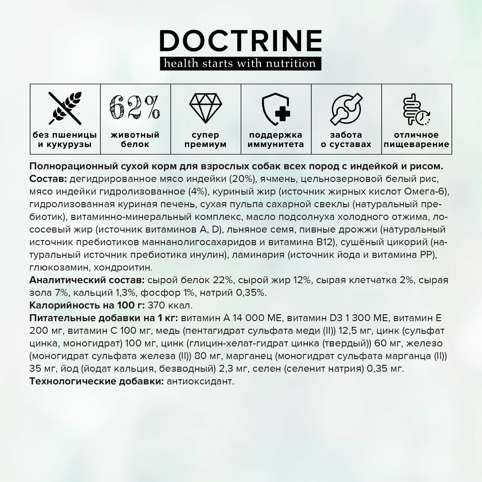 Doctrine - Полнорационный сухой корм для взрослых собак всех пород, с Индейкой, 18 кг (18 кг)