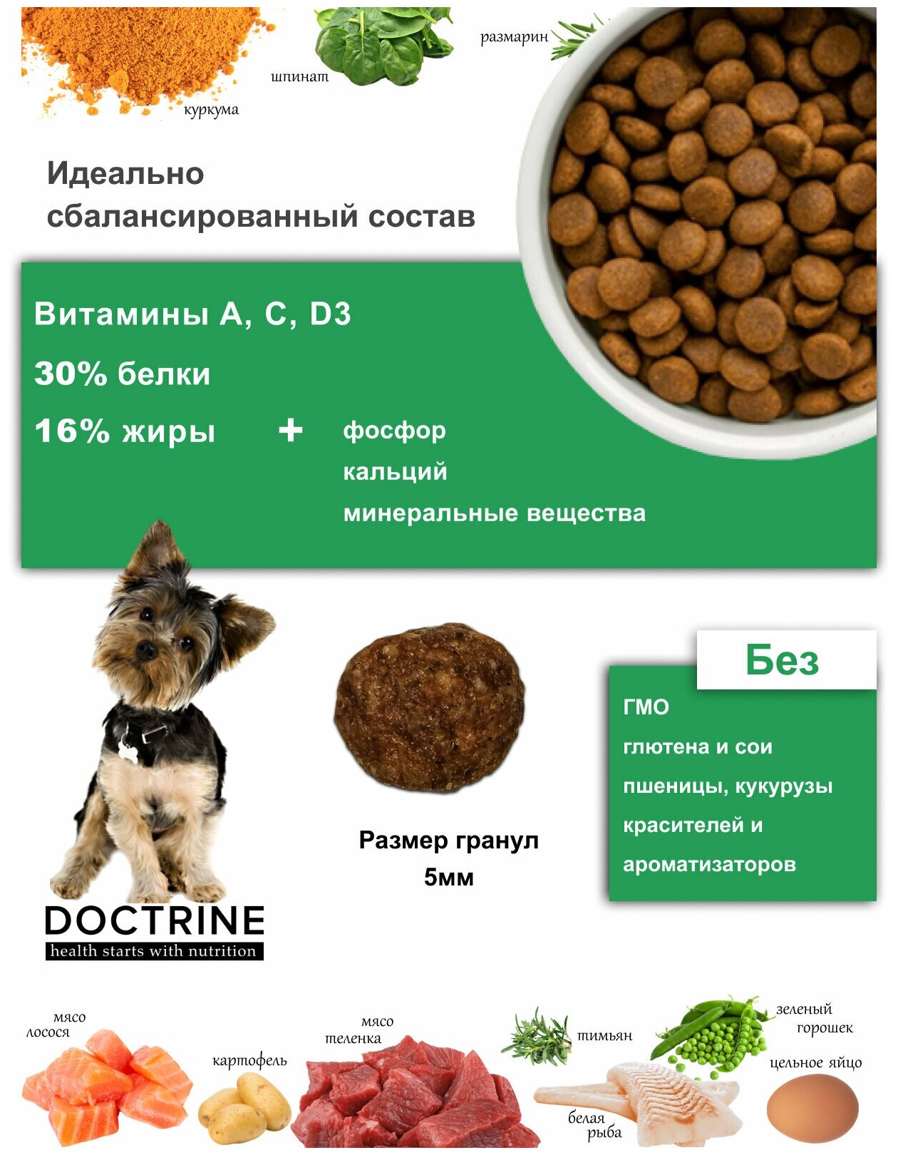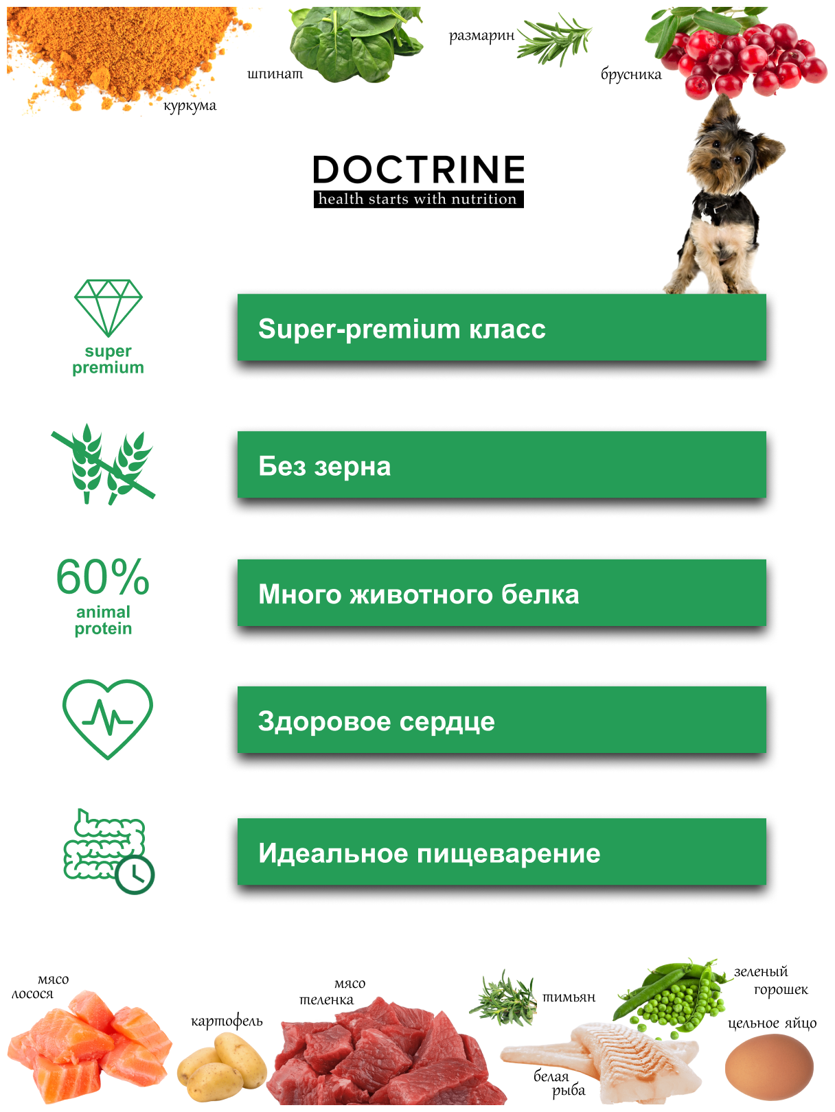 Сухой корм для щенков мелких пород Беззерновой DOCTRINE с телятиной и олениной 800г / доктрин, доктрина