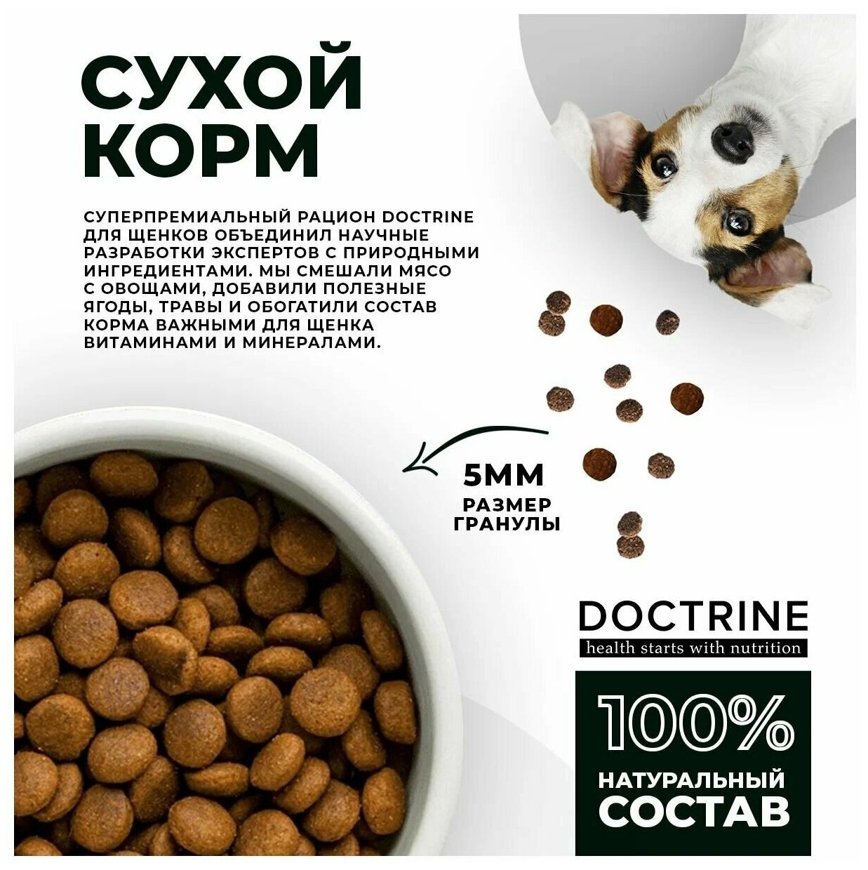 Корм сухой Doctrine полнорационный для щенков всех пород, с индейкой и рисом, 18 кг