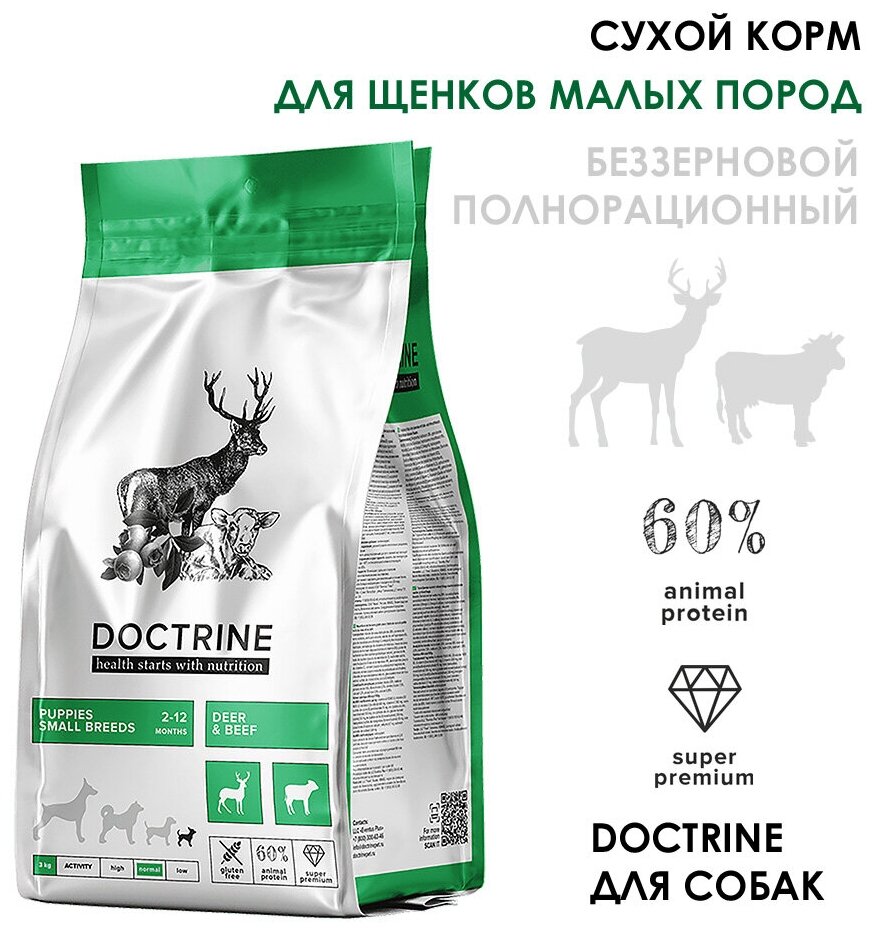 Сухой беззерновой корм DOCTRINE для щенков мелких пород с телятиной и олениной, 3 кг