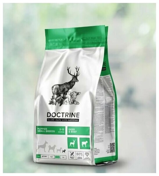 Купить Корм беззерновой для щенков мелких пород с телятиной и олениной DOCTRINE 8 кг