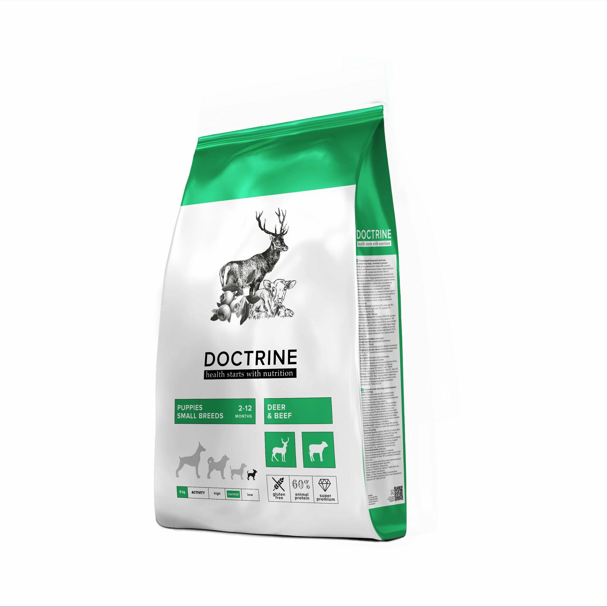 Сухой беззерновой корм DOCTRINE для щенков мелких пород с телятиной и олениной, 8 кг