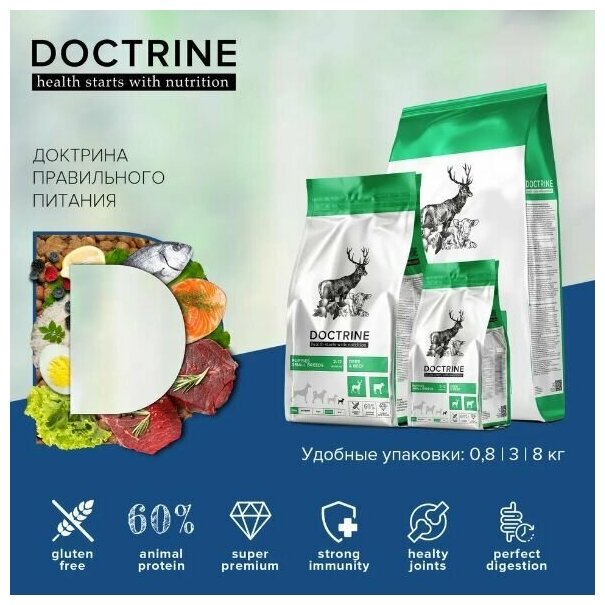 Сухой корм для щенков мелких пород Беззерновой DOCTRINE с телятиной и олениной 8кг / доктрин, доктрина