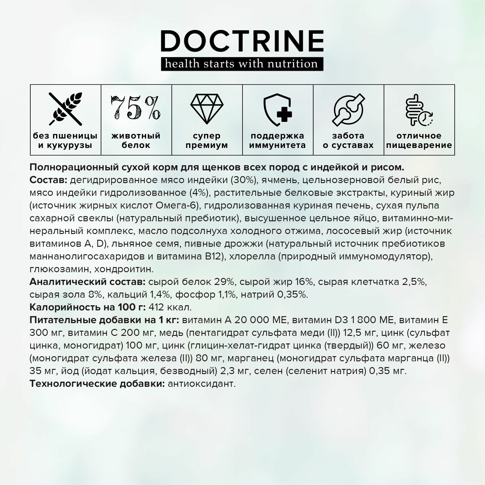 DOCTRINE PUPPY ALL BREEDS TURKEY & RICE для щенков всех пород с индейкой и рисом 18 кг